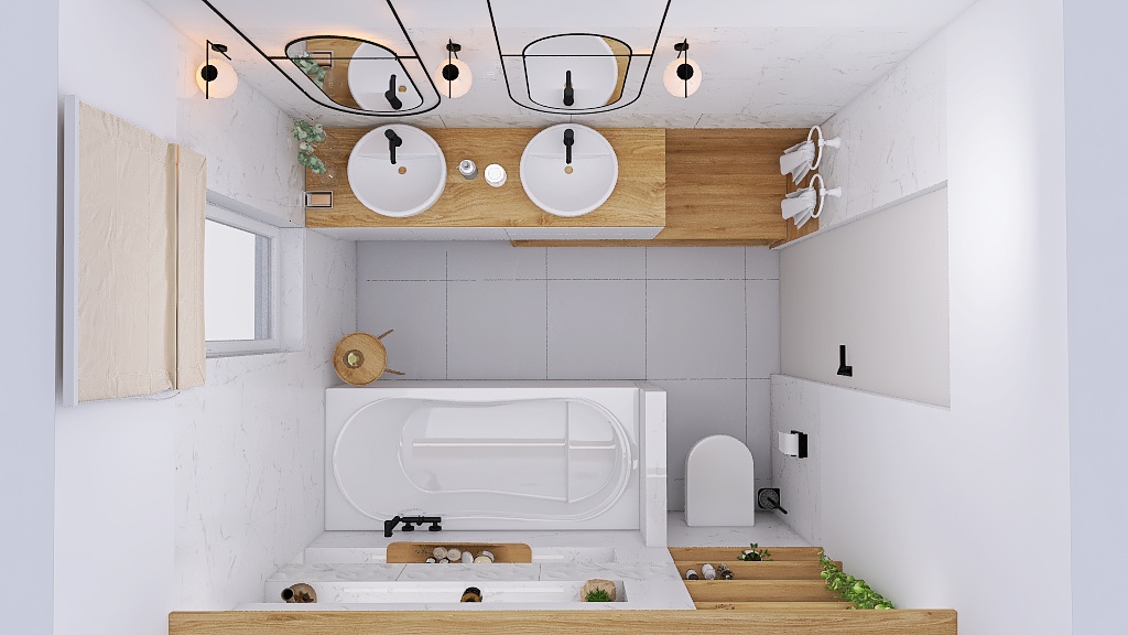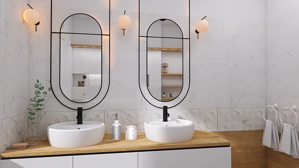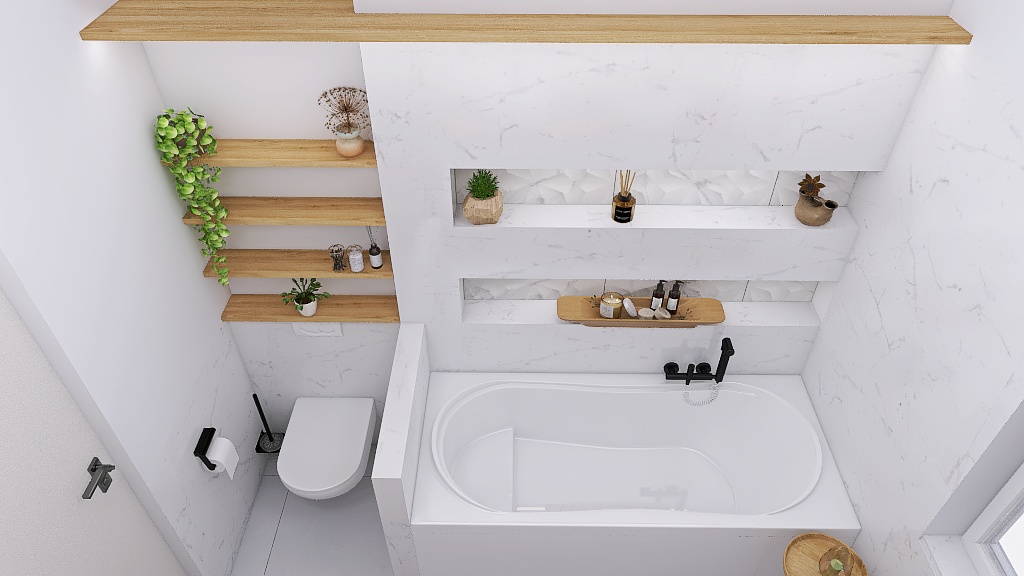 Ebben a projektben az volt a célom, hogy a rendelkezésre álló kis tér ellenére egy kényelmes és stílusos fürdőszobát hozzak létre. Minden négyzetcentimétert kihasználtam, hogy a lehető legpraktikusabb legyen a tér. A falra szerelt szekrények és polcok rengeteg tárolóhelyet biztosítanak anélkül, hogy zsúfolttá tennék a helyiséget.